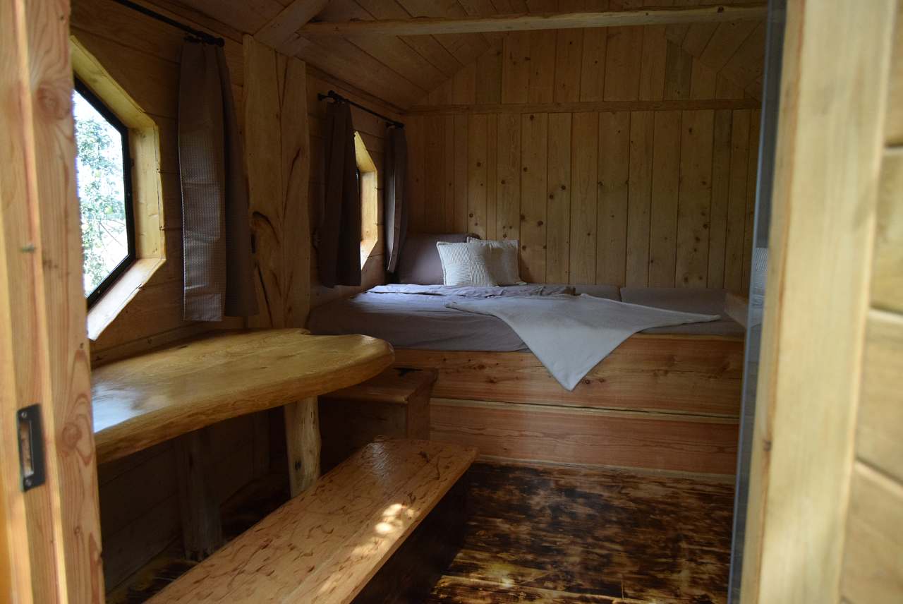 Prostornou postel o šířce 270 cm – její jedinečnost spočívá v tom, že je umístěna přímo nad devíti včelstvy. Jejich jemné bzučení a vůně medu vytváří zcela neopakovatelnou atmosféru.